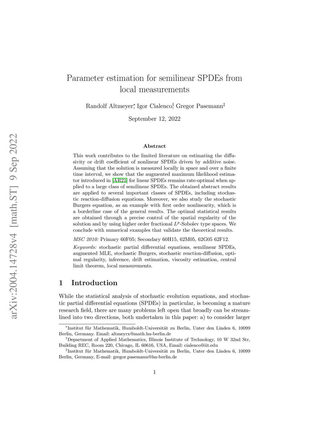 This work contributes to the limited literature on estimating the diffusivity or drift coefficient of nonlinear SPDEs driven by additive noise. Assuming that the solution is measured locally in space and over a finite time interval, we show that the augmented maximum likelihood estimator introduced in Altmeyer, Reiss (2020) retains its asymptotic properties when used for semilinear SPDEs that satisfy some abstract, and verifiable, conditions. The proofs of asymptotic results are based on splitting the solution in linear and nonlinear parts and fine regularity properties in -spaces. The obtained general results are applied to particular classes of equations, including stochastic reaction-diffusion equations. The stochastic Burgers equation, as an example with first order nonlinearity, is an interesting borderline case of the general results, and is treated by a Wiener chaos expansion. We conclude with numerical examples that validate the theoretical results.