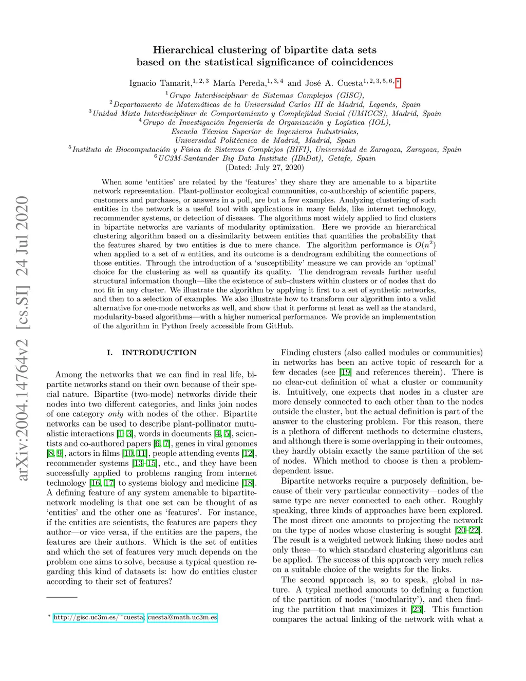 Hierarchical clustering of bipartite data sets based on the statistical