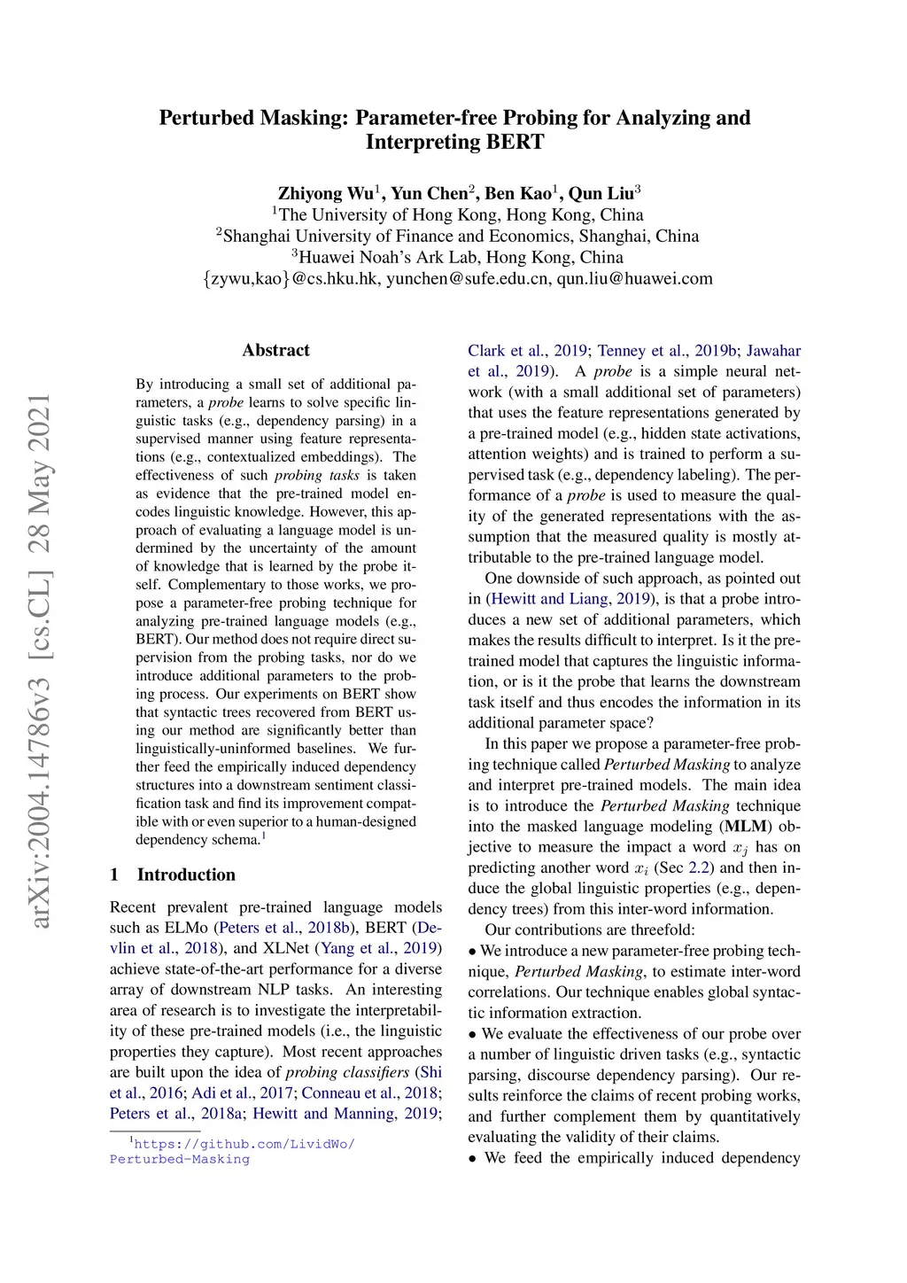 Perturbed Masking: Parameter-free Probing for Analyzing and Interpreting