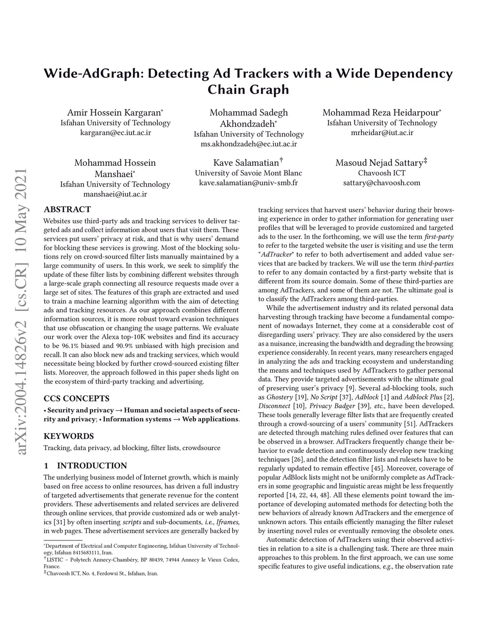 Wide-AdGraph: Detecting Ad Trackers with a Wide Dependency Chain Graph