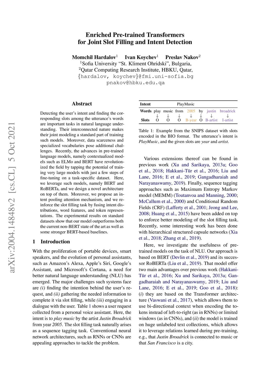 Enriched Pre-trained Transformers for Joint Slot Filling and Intent