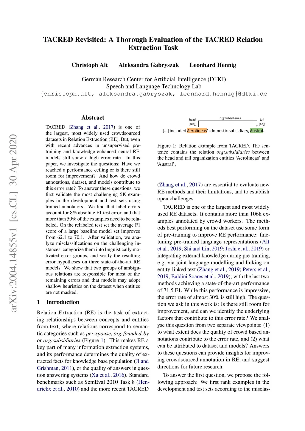 TACRED Revisited: A Thorough Evaluation of the TACRED Relation