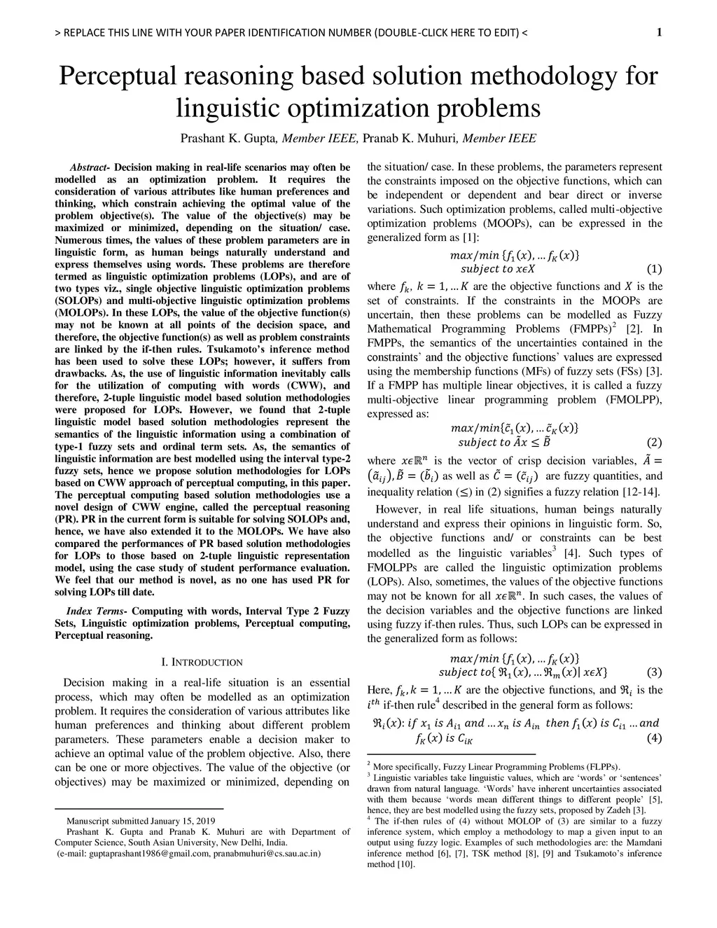 Perceptual reasoning based solution methodology for linguistic