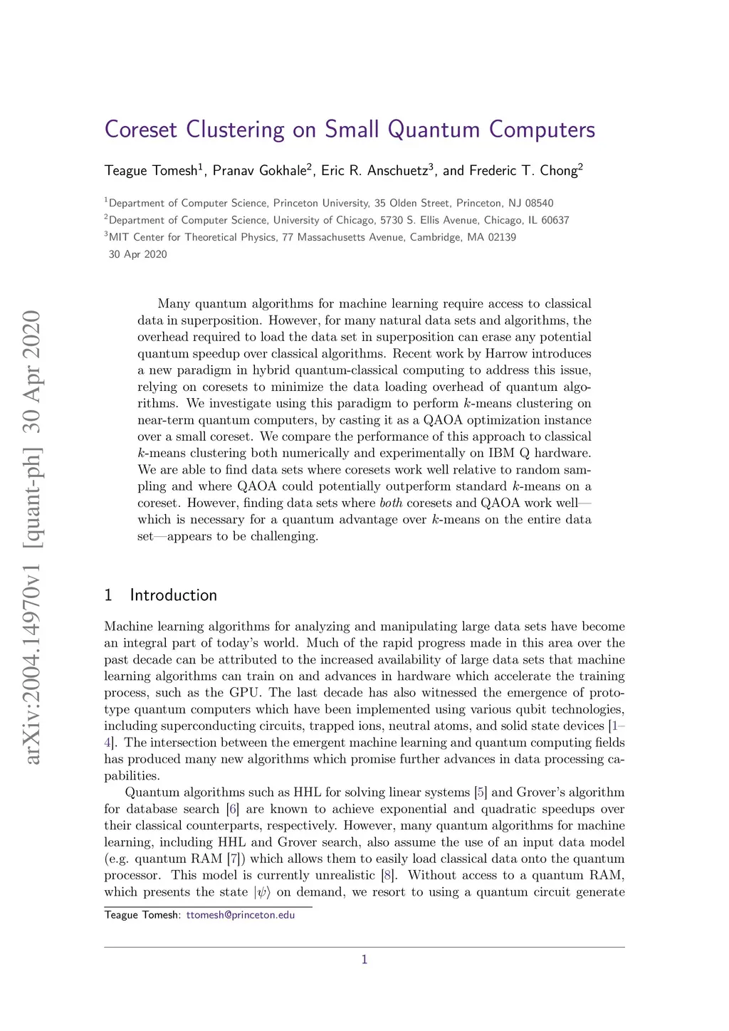 Coreset Clustering on Small Quantum Computers