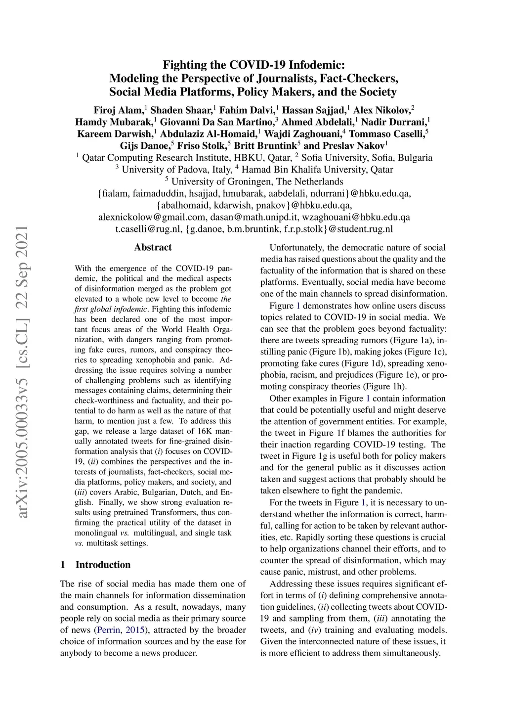 Fighting the COVID-19 Infodemic: Modeling the Perspective of