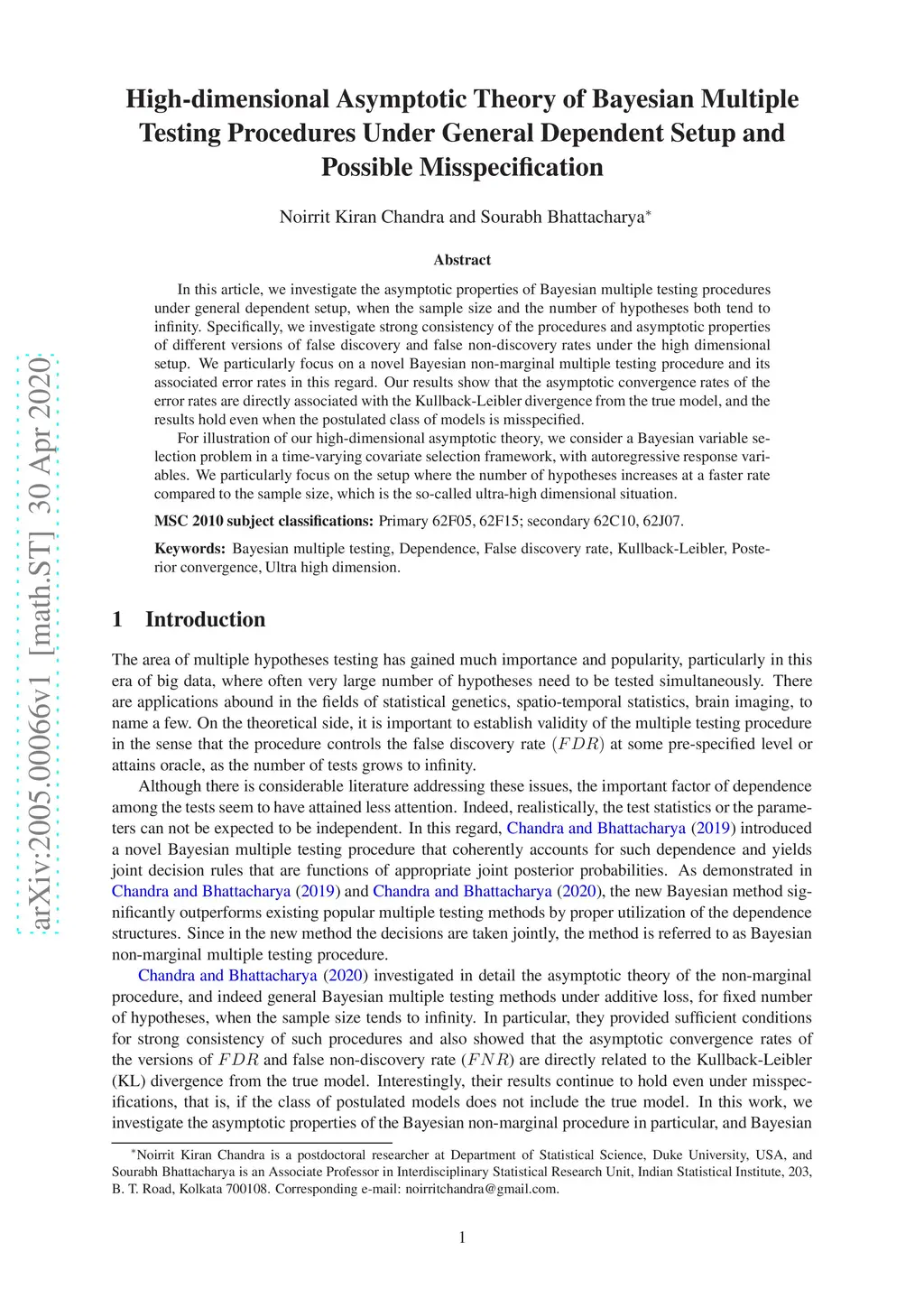 In this article, we investigate the asymptotic properties of Bayesian multiple testing procedures under general dependent setup, when the sample size and the number of hypotheses both tend to infinity. Specifically, we investigate strong consistency of the procedures and asymptotic properties of different versions of false discovery and false non-discovery rates under the high dimensional setup. We particularly focus on a novel Bayesian non-marginal multiple testing procedure and its associated error rates in this regard. Our results show that the asymptotic convergence rates of the error rates are directly associated with the Kullback-Leibler divergence from the true model, and the results hold even when the postulated class of models is misspecified. For illustration of our high-dimensional asymptotic theory, we consider a Bayesian variable selection problem in a time-varying covariate selection framework, with autoregressive response variables. We particularly focus on the setup where the number of hypotheses increases at a faster rate compared to the sample size, which is the so-called ultra-high dimensional situation.