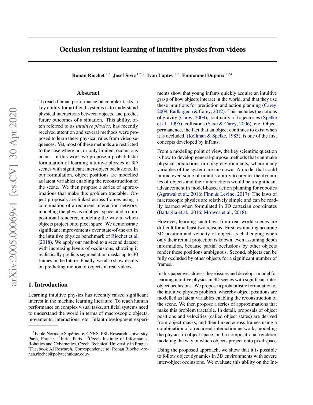 Occlusion resistant learning of intuitive physics from videos
