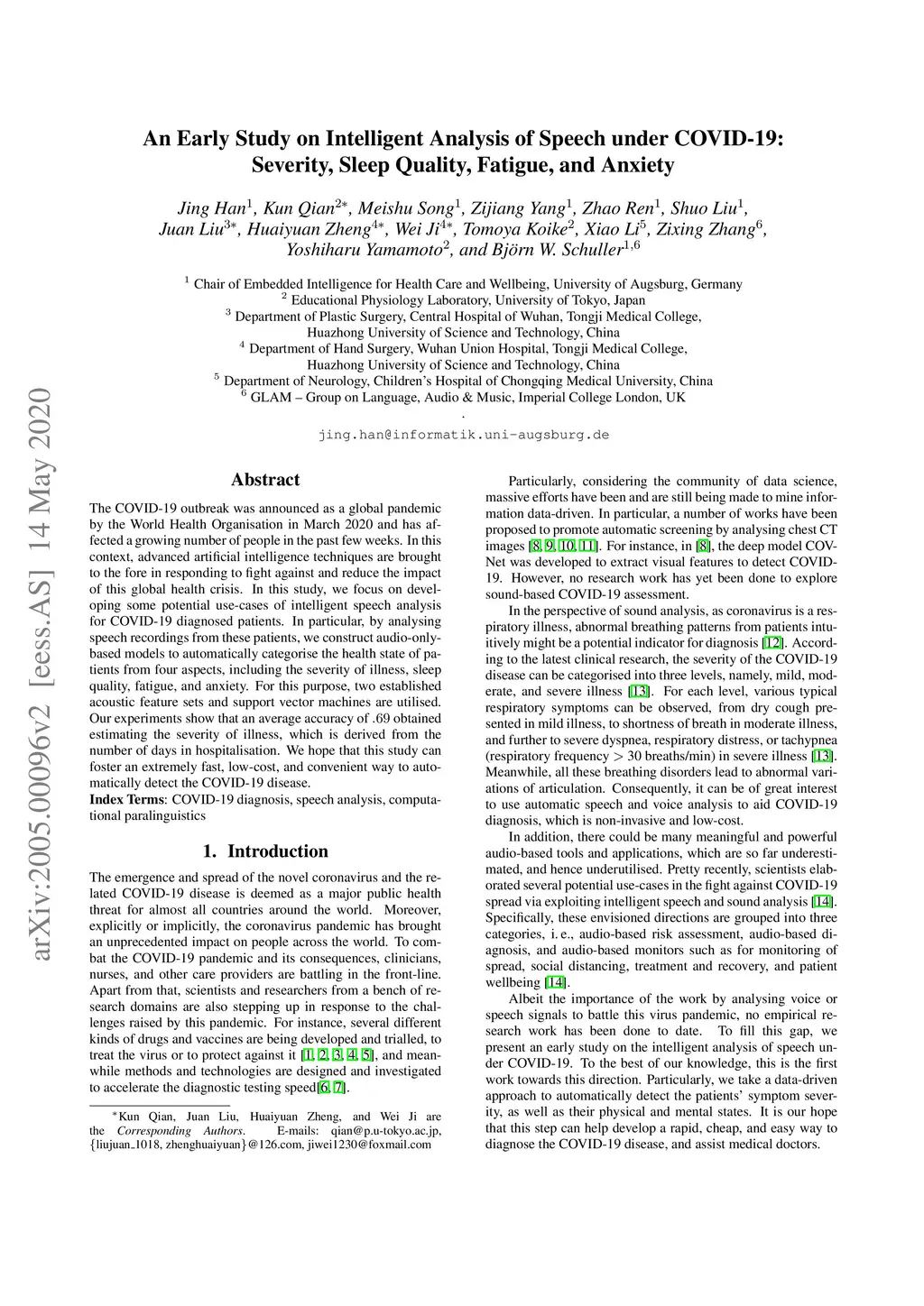 An Early Study on Intelligent Analysis of Speech under COVID-19: