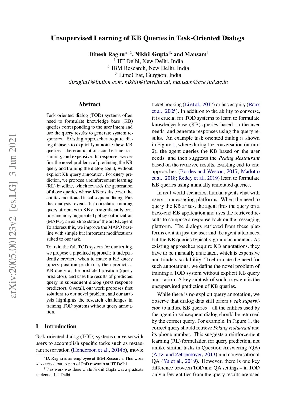 Unsupervised Learning of KB Queries in Task-Oriented Dialogs