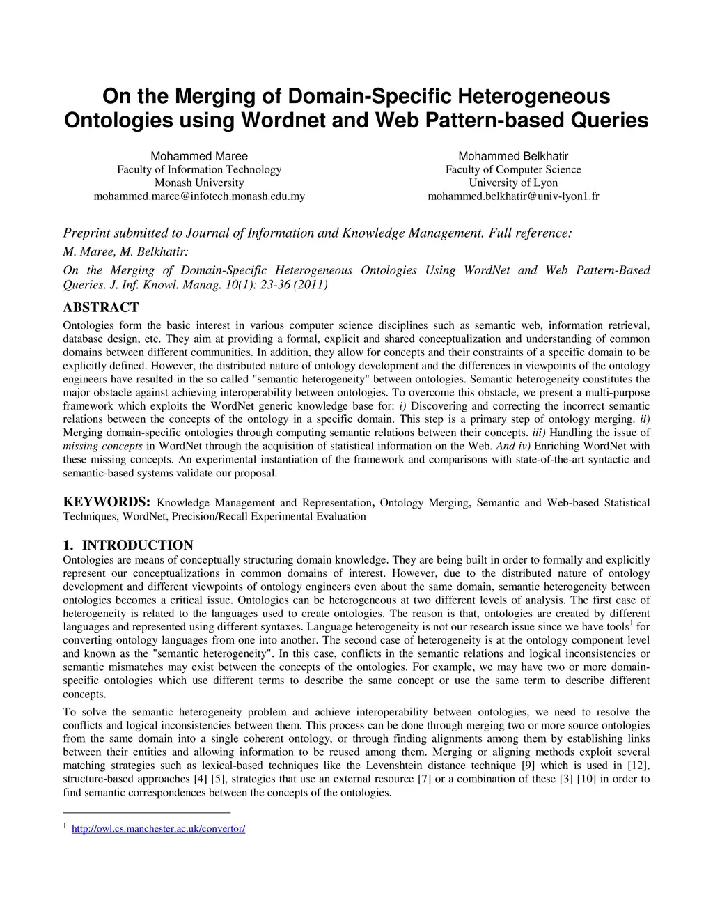 On the Merging of Domain-Specific Heterogeneous Ontologies using Wordnet