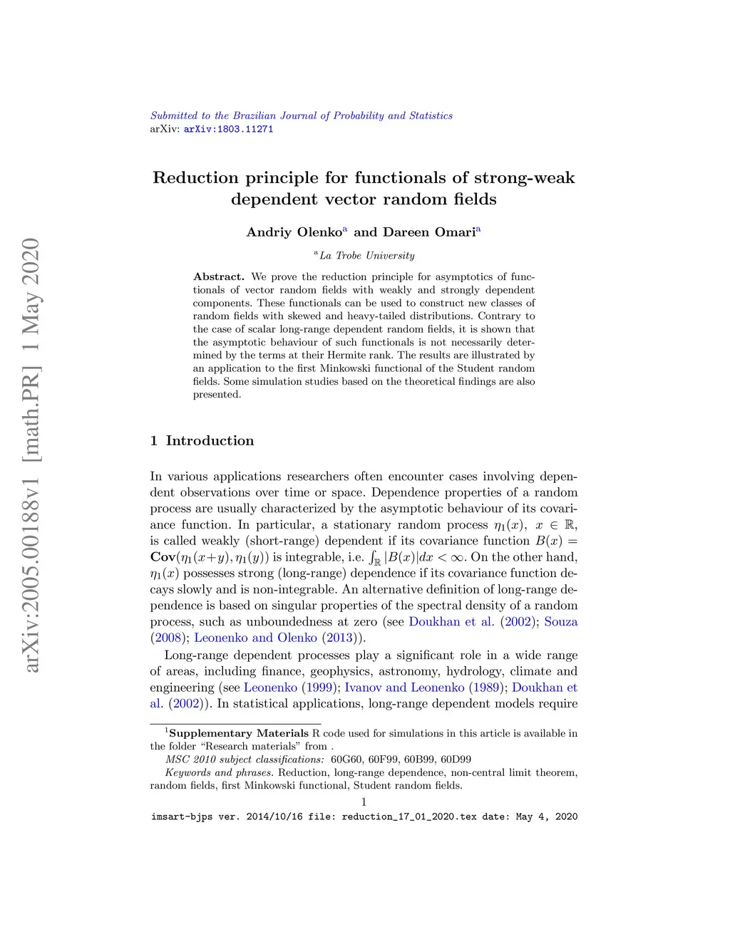 We prove the reduction principle for asymptotics of functionals of vector random fields with weakly and strongly dependent components. These functionals can be used to construct new classes of random fields with skewed and heavy-tailed distributions. Contrary to the case of scalar long-range dependent random fields, it is shown that the asymptotic behaviour of such functionals is not necessarily determined by the terms at their Hermite rank. The results are illustrated by an application to the first Minkowski functional of the Student random fields. Some simulation studies based on the theoretical findings are also presented.