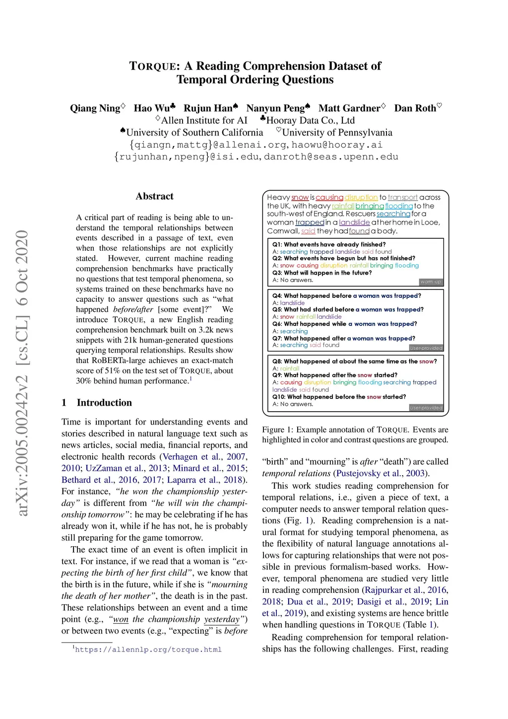 TORQUE: A Reading Comprehension Dataset of Temporal Ordering Questions