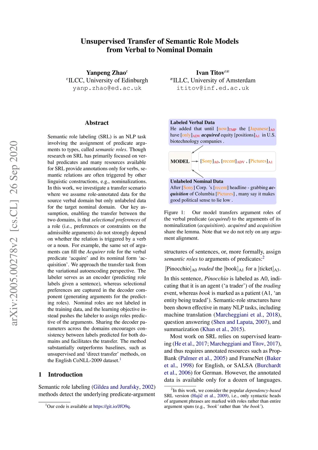 Unsupervised Transfer of Semantic Role Models from Verbal to Nominal