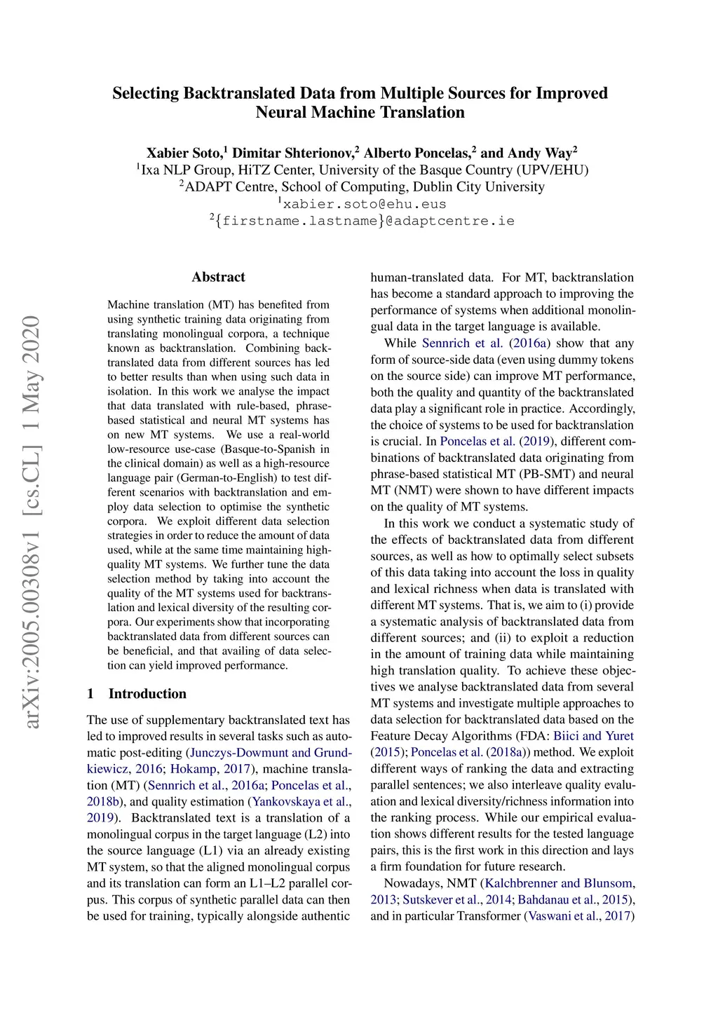 Selecting Backtranslated Data from Multiple Sources for Improved Neural