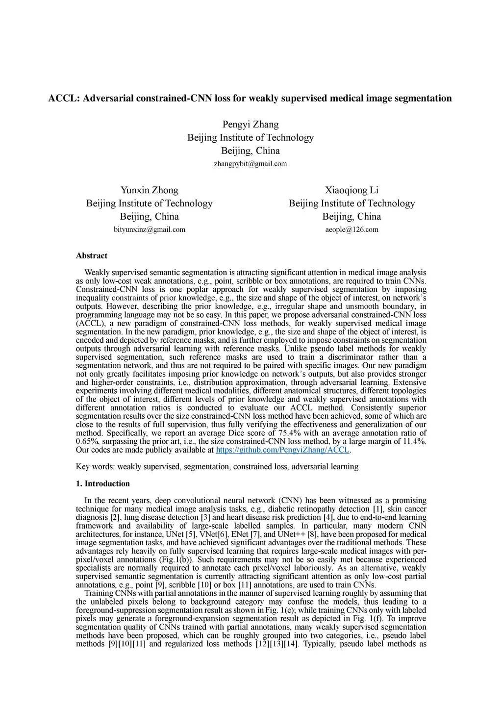 ACCL: Adversarial constrained-CNN loss for weakly supervised medical