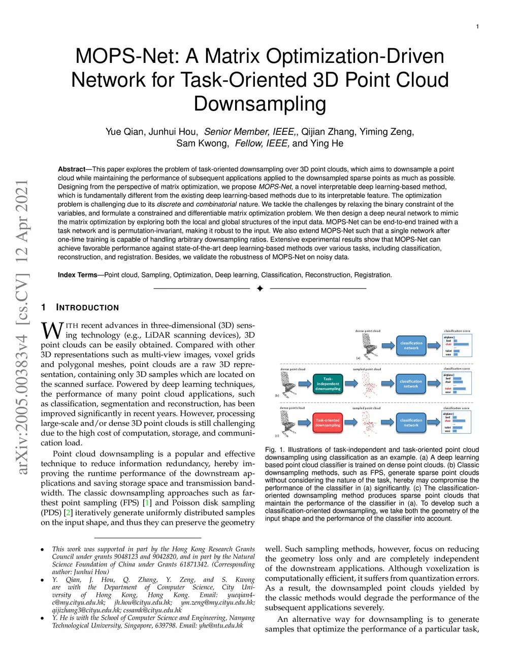 MOPS-Net: A Matrix Optimization-driven Network forTask-Oriented 3D Point