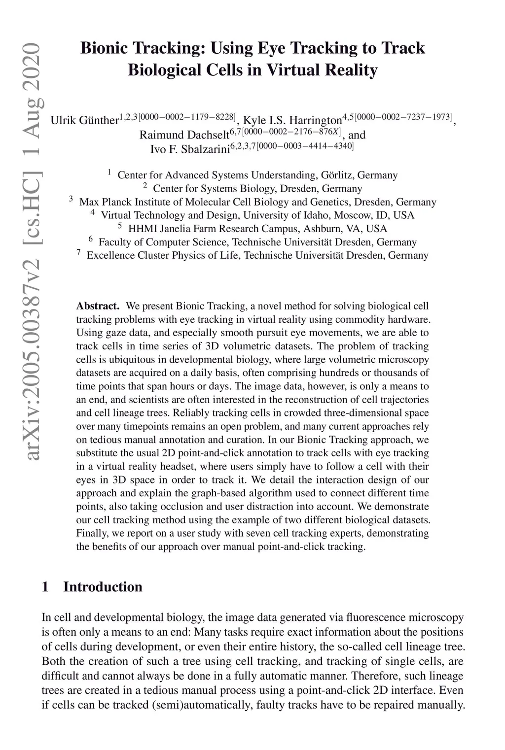Bionic Tracking: Using Eye Tracking to Track Biological Cells in Virtual