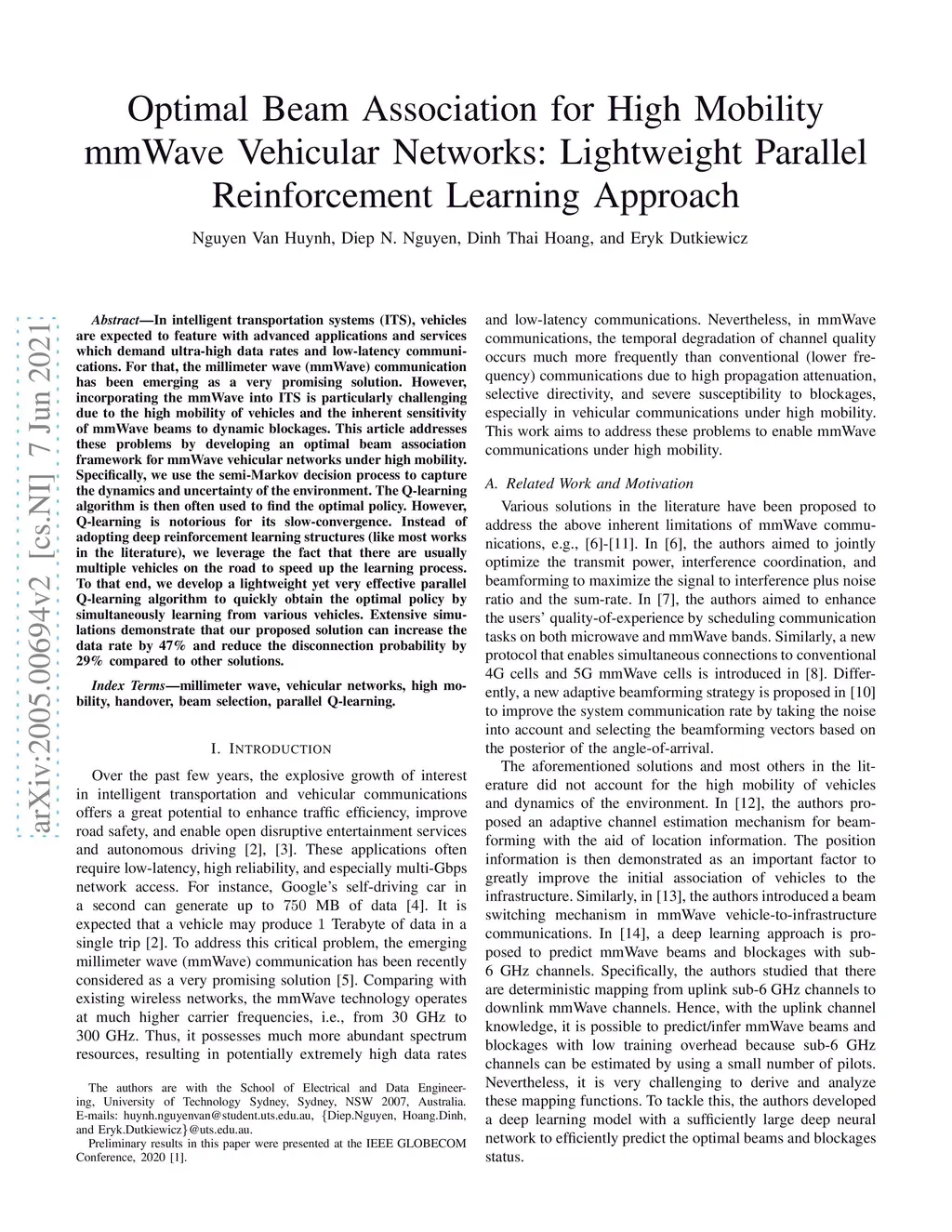 In intelligent transportation systems (ITS), vehicles are expected to feature with advanced applications and services which demand ultra-high data rates and low-latency communications. For that, the millimeter wave (mmWave) communication has been emerging as a very promising solution. However, incorporating the mmWave into ITS is particularly challenging due to the high mobility of vehicles and the inherent sensitivity of mmWave beams to dynamic blockages. This article addresses these problems by developing an optimal beam association framework for mmWave vehicular networks under high mobility. Specifically, we use the semi-Markov decision process to capture the dynamics and uncertainty of the environment. The Q-learning algorithm is then often used to find the optimal policy. However, Q-learning is notorious for its slow-convergence. Instead of adopting deep reinforcement learning structures (like most works in the literature), we leverage the fact that there are usually multiple vehicles on the road to speed up the learning process. To that end, we develop a lightweight yet very effective parallel Q-learning algorithm to quickly obtain the optimal policy by simultaneously learning from various vehicles. Extensive simulations demonstrate that our proposed solution can increase the data rate by 47% and reduce the disconnection probability by 29% compared to other solutions.