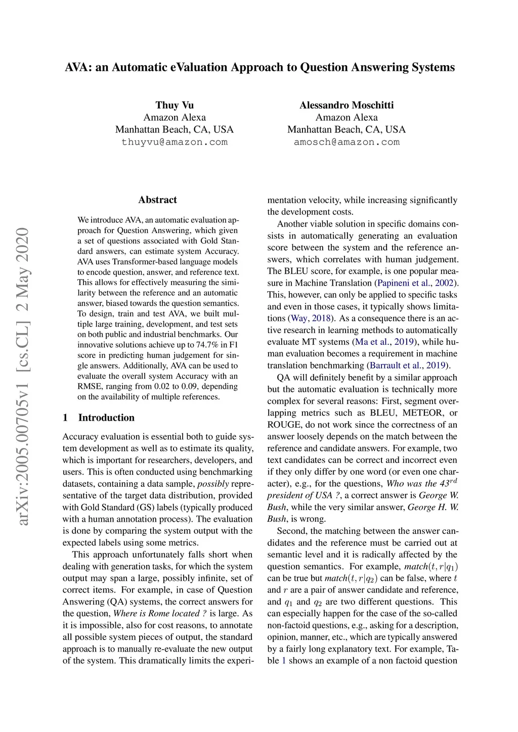 AVA: an Automatic eValuation Approach to Question Answering Systems