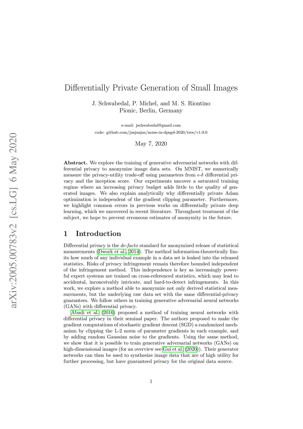 We explore the training of generative adversarial networks with differential privacy to anonymize image data sets. On MNIST, we numerically measure the privacy-utility trade-off using parameters from - differential privacy and the inception score. Our experiments uncover a saturated training regime where an increasing privacy budget adds little to the quality of generated images. We also explain analytically why differentially private Adam optimization is independent of the gradient clipping parameter. Furthermore, we highlight common errors in previous works on differentially private deep learning, which we uncovered in recent literature. Throughout the treatment of the subject, we hope to prevent erroneous estimates of anonymity in the future.