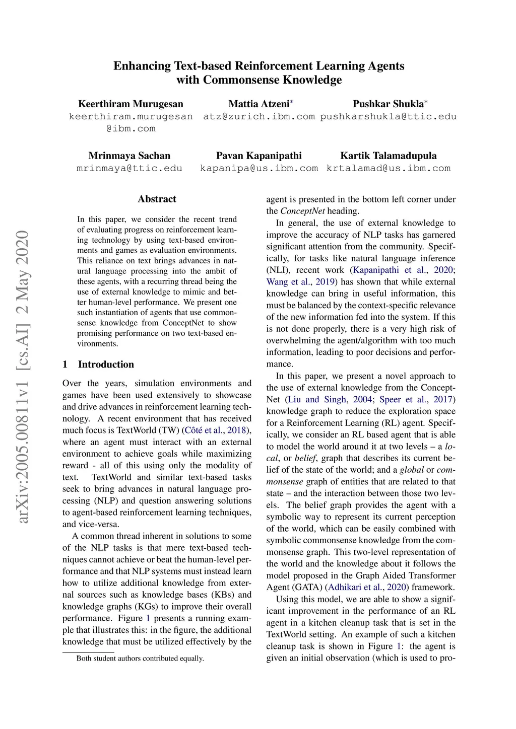 In this paper, we consider the recent trend of evaluating progress on reinforcement learning technology by using text-based environments and games as evaluation environments. This reliance on text brings advances in natural language processing into the ambit of these agents, with a recurring thread being the use of external knowledge to mimic and better human-level performance. We present one such instantiation of agents that use commonsense knowledge from ConceptNet to show promising performance on two text-based environments.