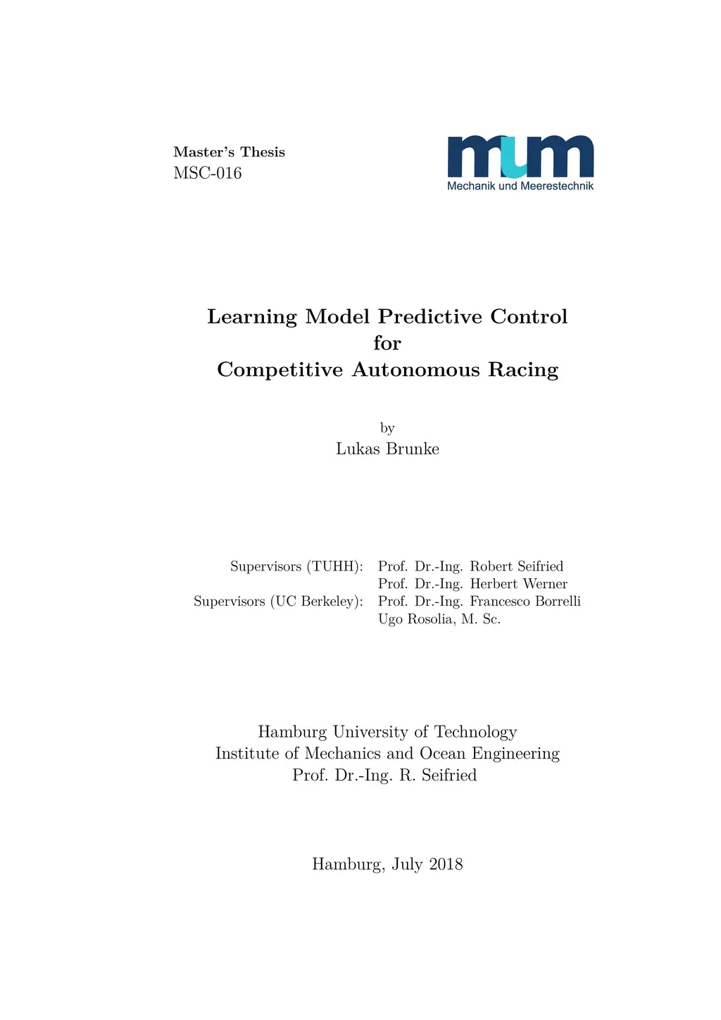 The goal of this thesis is to design a learning model predictive controller (LMPC) that allows multiple agents to race competitively on a predefined race track in real-time. This thesis addresses two major shortcomings in the already existing single-agent formulation. Previously, the agent determines a locally optimal trajectory but does not explore the state space, which may be necessary for overtaking maneuvers. Additionally, obstacle avoidance for LMPC has been achieved in the past by using a non-convex terminal set, which increases the complexity for determining a solution to the optimization problem. The proposed algorithm for multi-agent racing explores the state space by executing the LMPC for multiple different initializations, which yields a richer terminal safe set. Furthermore, a new method for selecting states in the terminal set is developed, which keeps the convexity for the terminal safe set and allows for taking suboptimal states.