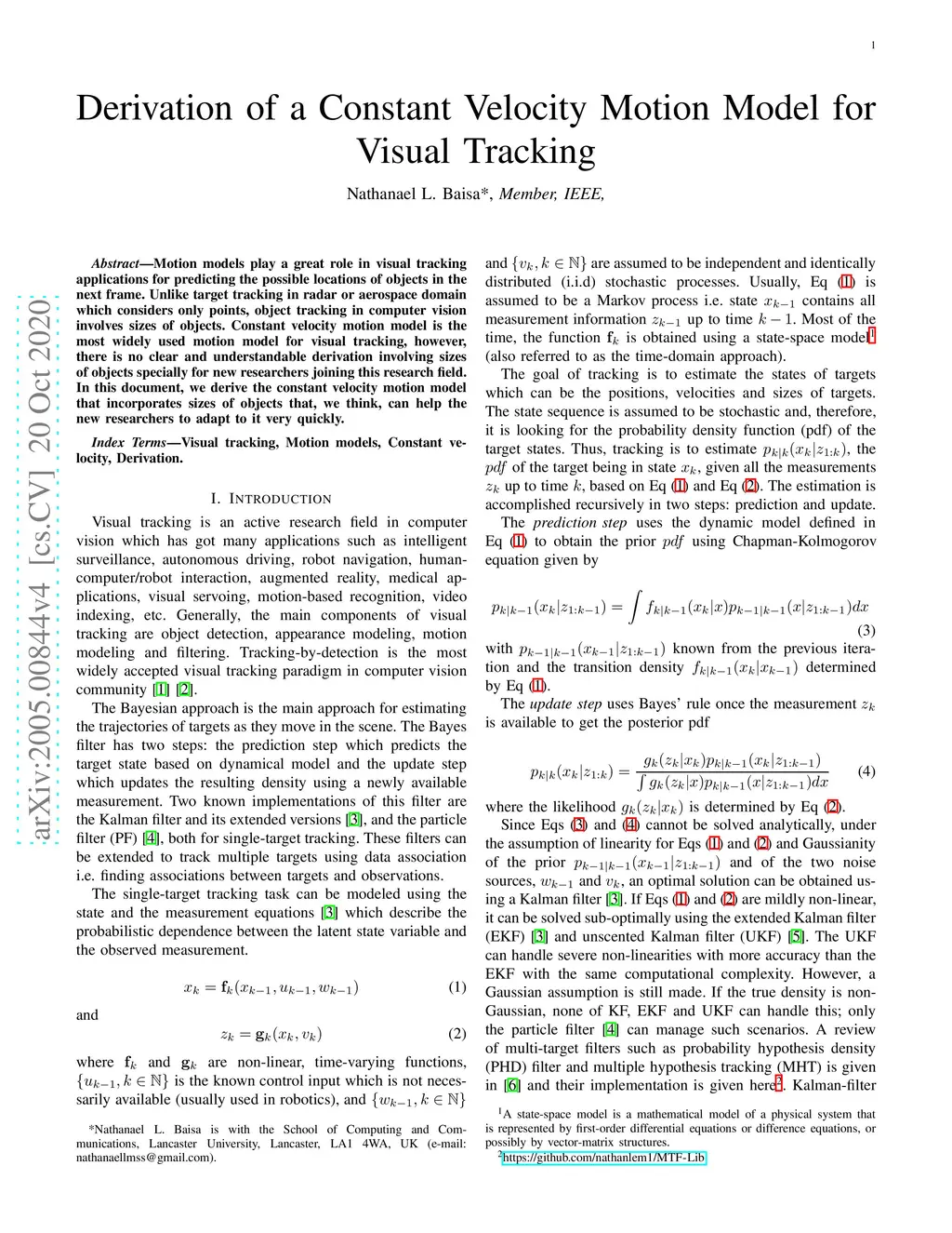 Derivation of a Constant Velocity Motion Model for Visual Tracking