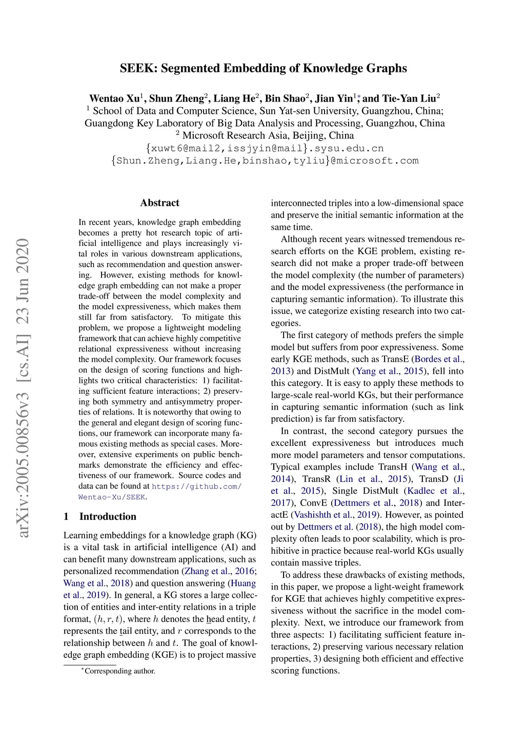 In recent years, knowledge graph embedding becomes a pretty hot research topic of artificial intelligence and plays increasingly vital roles in various downstream applications, such as recommendation and question answering. However, existing methods for knowledge graph embedding can not make a proper trade-off between the model complexity and the model expressiveness, which makes them still far from satisfactory. To mitigate this problem, we propose a lightweight modeling framework that can achieve highly competitive relational expressiveness without increasing the model complexity. Our framework focuses on the design of scoring functions and highlights two critical characteristics: 1) facilitating sufficient feature interactions; 2) preserving both symmetry and antisymmetry properties of relations. It is noteworthy that owing to the general and elegant design of scoring functions, our framework can incorporate many famous existing methods as special cases. Moreover, extensive experiments on public benchmarks demonstrate the efficiency and effectiveness of our framework. Source codes and data can be found at \url{https://github.com/Wentao-Xu/SEEK}.