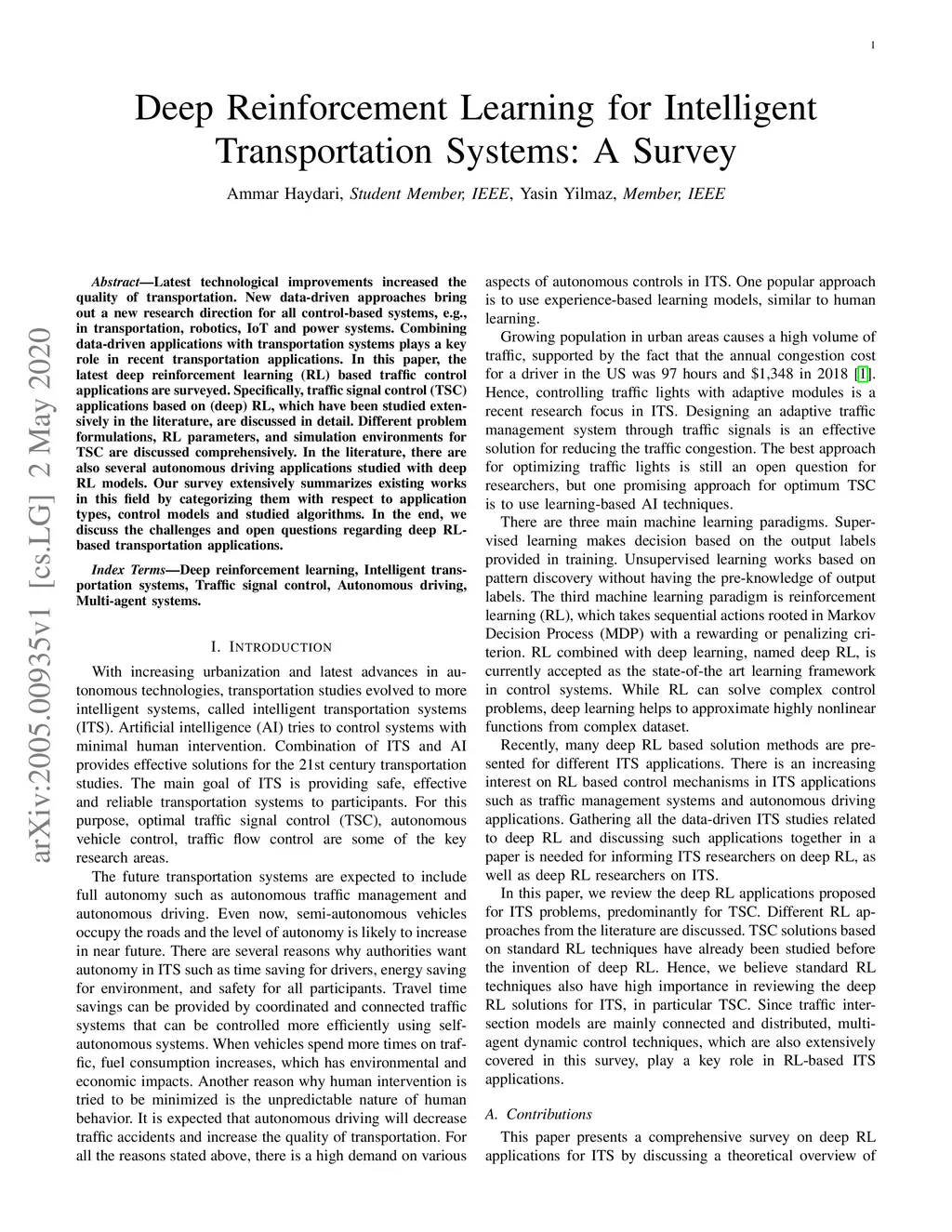 Deep Reinforcement Learning for Intelligent Transportation Systems: A