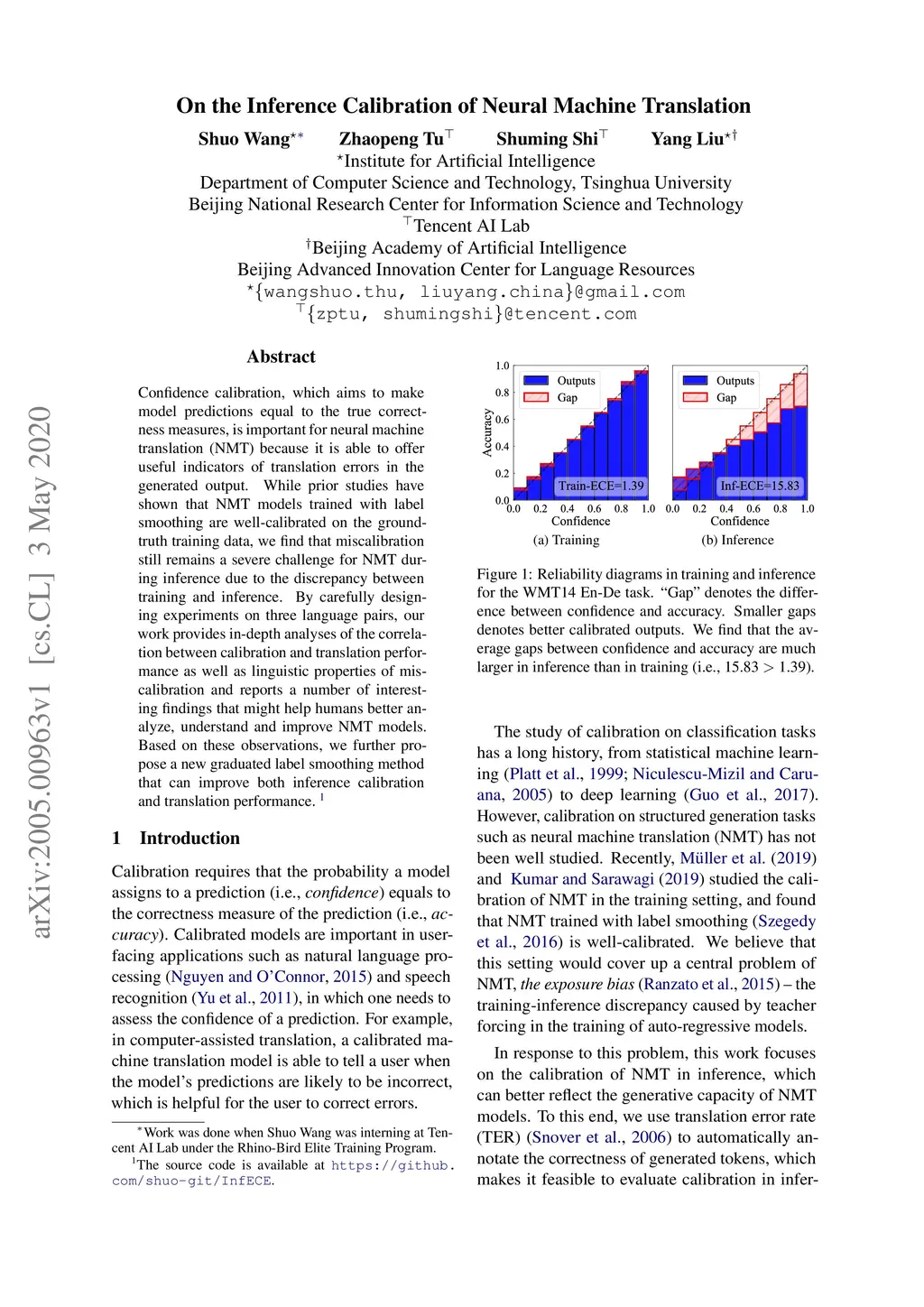 Confidence calibration, which aims to make model predictions equal to the true correctness measures, is important for neural machine translation (NMT) because it is able to offer useful indicators of translation errors in the generated output. While prior studies have shown that NMT models trained with label smoothing are well-calibrated on the ground-truth training data, we find that miscalibration still remains a severe challenge for NMT during inference due to the discrepancy between training and inference. By carefully designing experiments on three language pairs, our work provides in-depth analyses of the correlation between calibration and translation performance as well as linguistic properties of miscalibration and reports a number of interesting findings that might help humans better analyze, understand and improve NMT models. Based on these observations, we further propose a new graduated label smoothing method that can improve both inference calibration and translation performance.