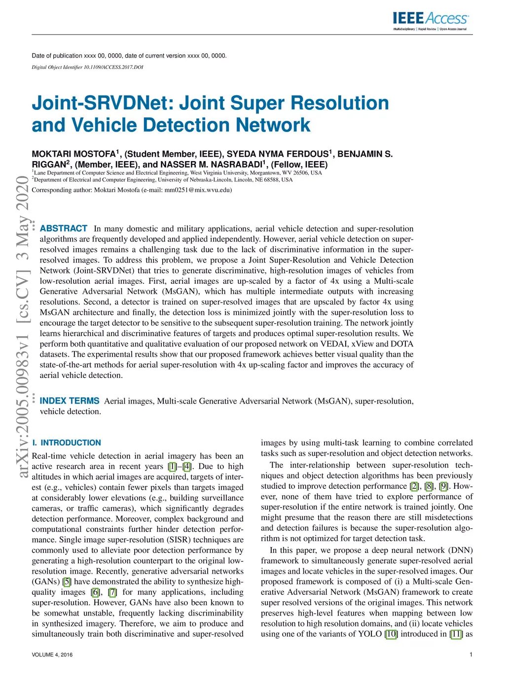Joint-SRVDNet: Joint Super Resolution and Vehicle Detection Network