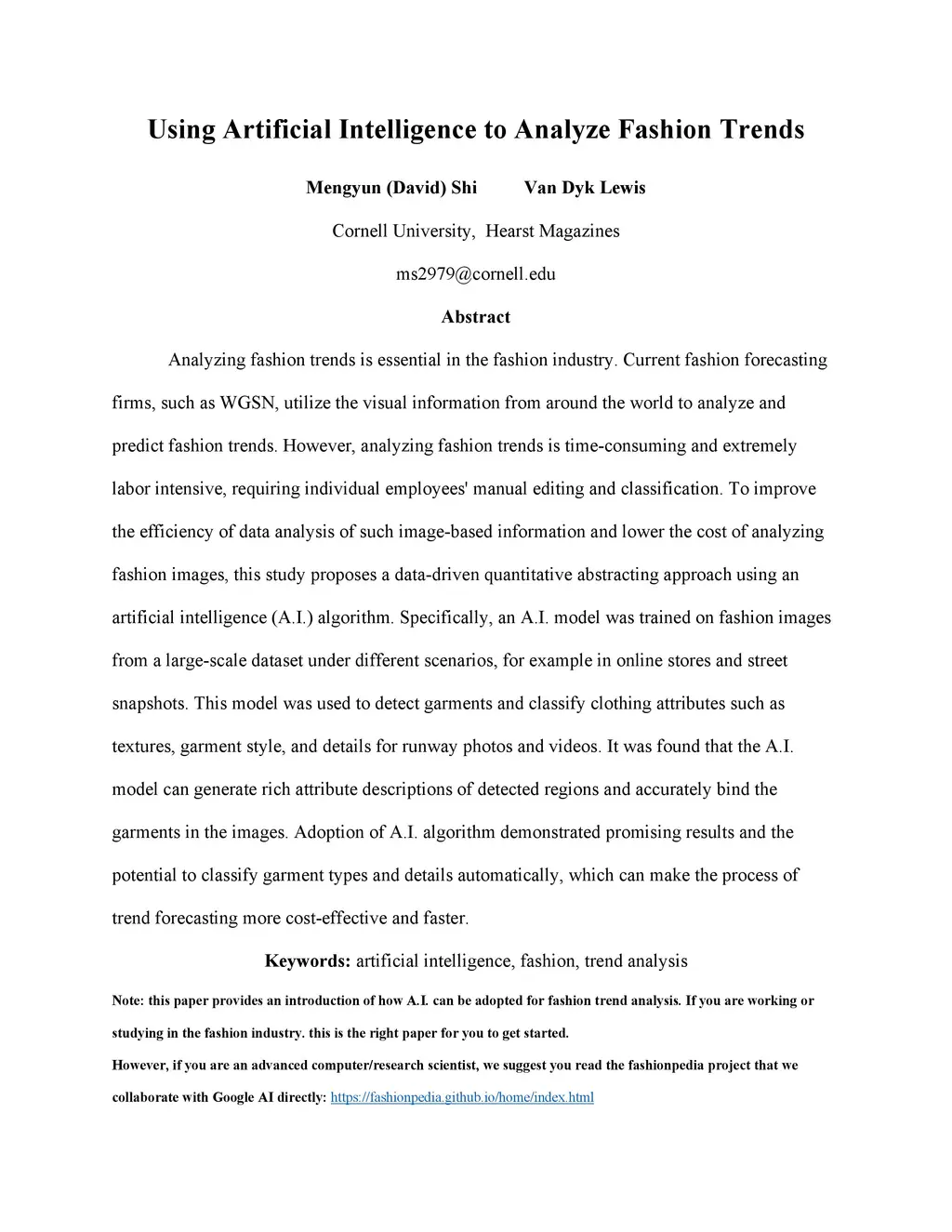 Using Artificial Intelligence to Analyze Fashion Trends