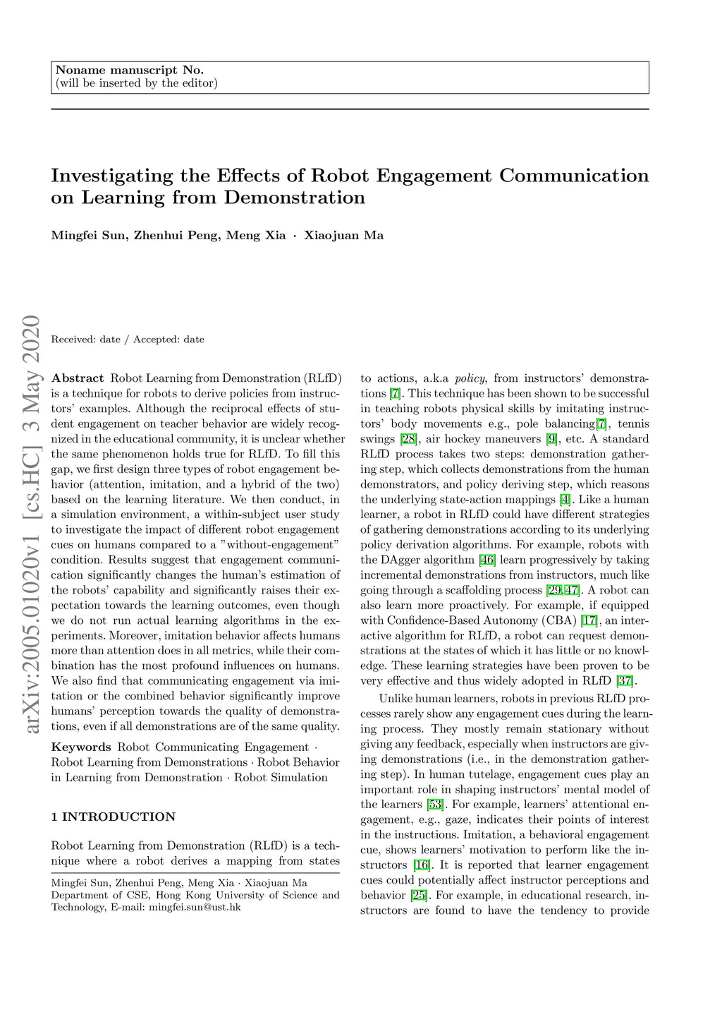 Investigating the Effects of Robot Engagement Communication on Learning