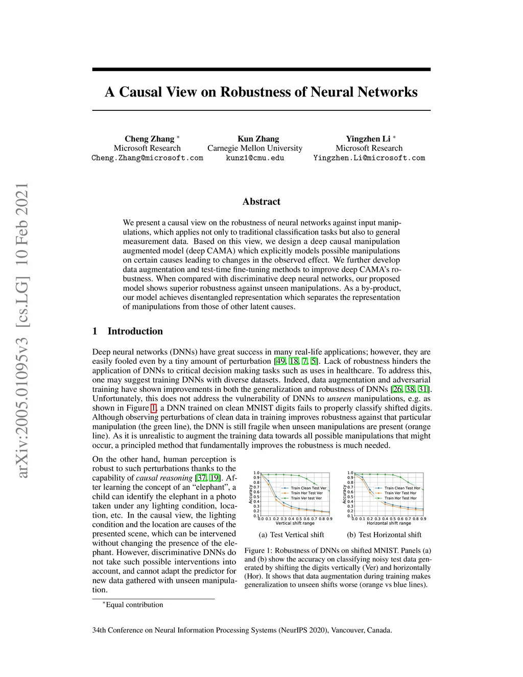We present a causal view on the robustness of neural networks against input manipulations, which applies not only to traditional classification tasks but also to general measurement data. Based on this view, we design a deep causal manipulation augmented model (deep CAMA) which explicitly models possible manipulations on certain causes leading to changes in the observed effect. We further develop data augmentation and test-time fine-tuning methods to improve deep CAMA's robustness. When compared with discriminative deep neural networks, our proposed model shows superior robustness against unseen manipulations. As a by-product, our model achieves disentangled representation which separates the representation of manipulations from those of other latent causes.