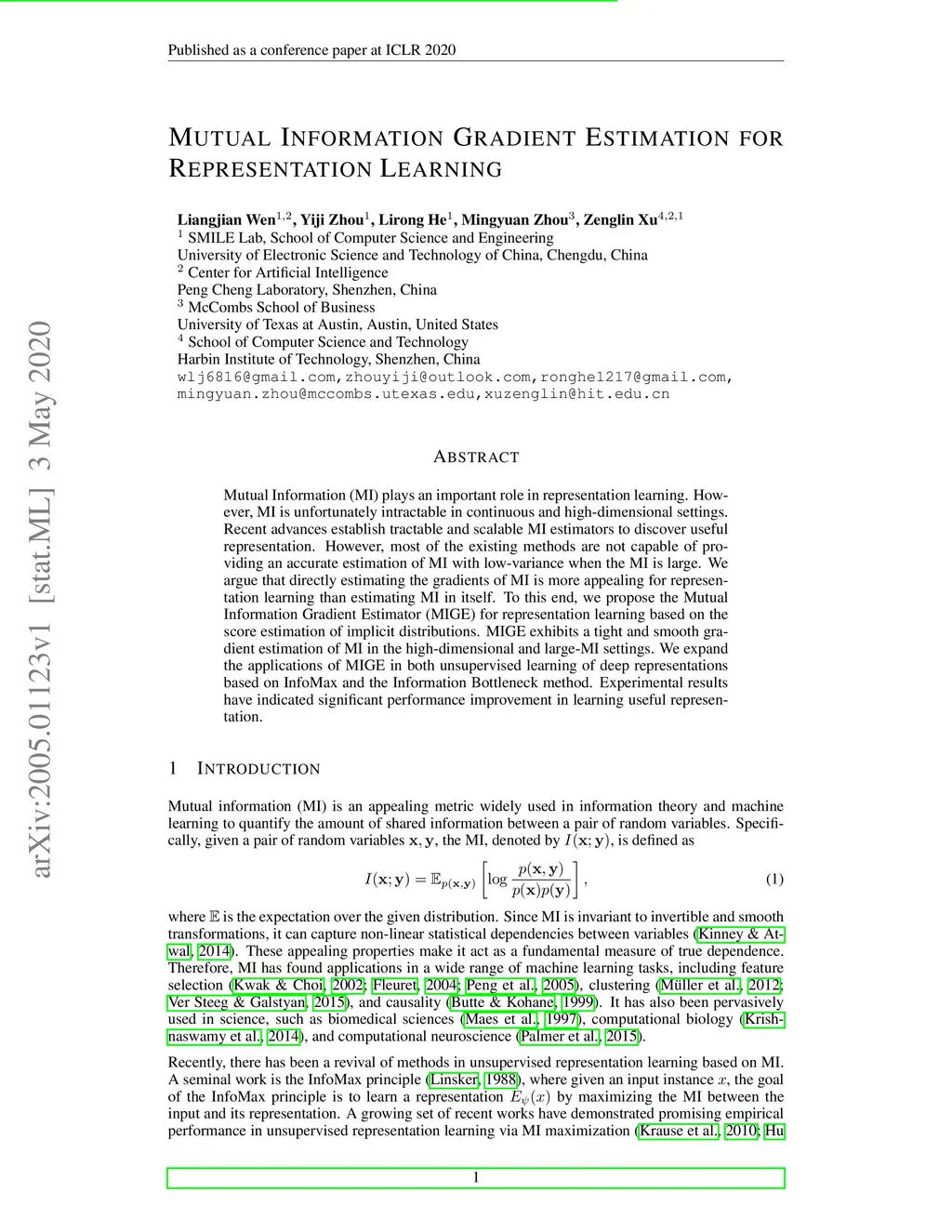 Mutual Information Gradient Estimation for Representation Learning