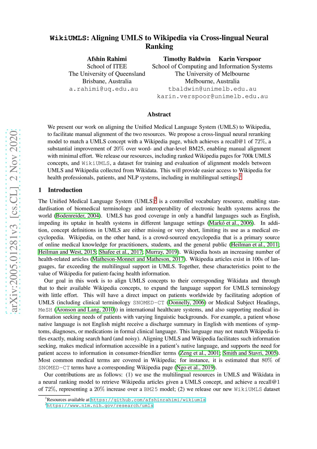 WikiUMLS: Aligning UMLS to Wikipedia via Cross-lingual Neural Ranking