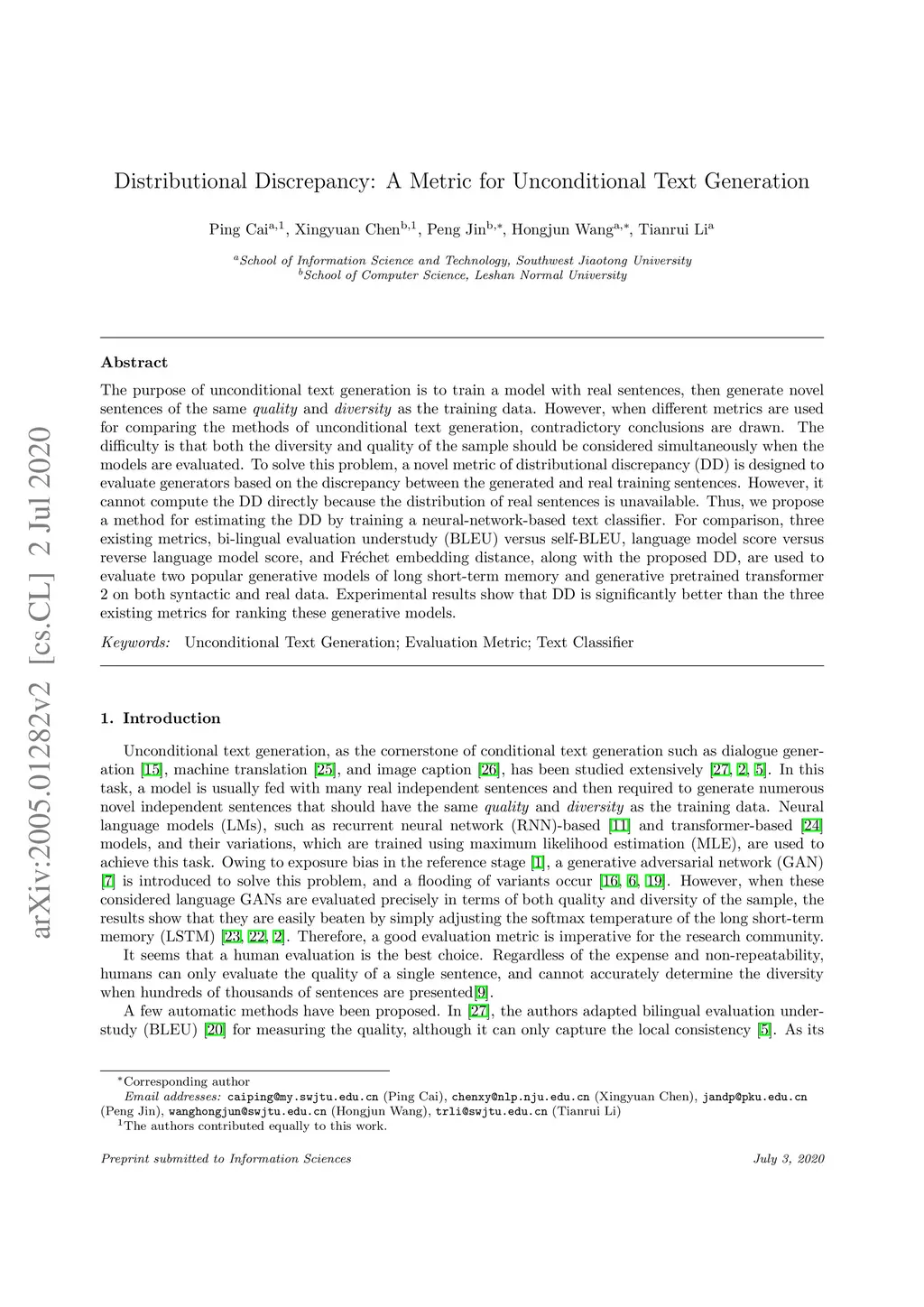 Distributional Discrepancy: A Metric for Unconditional Text Generation