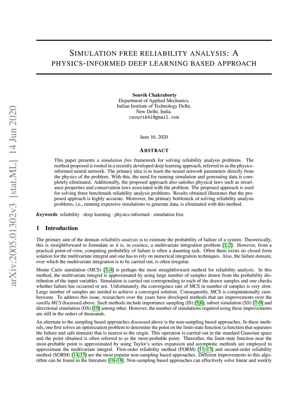 Simulation free reliability analysis: A physics-informed deep learning