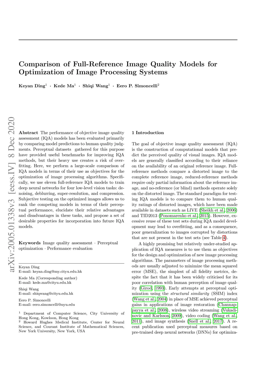The performance of objective image quality assessment (IQA) models has been evaluated primarily by comparing model predictions to human quality judgments. Perceptual datasets gathered for this purpose have provided useful benchmarks for improving IQA methods, but their heavy use creates a risk of overfitting. Here, we perform a large-scale comparison of IQA models in terms of their use as objectives for the optimization of image processing algorithms. Specifically, we use eleven full-reference IQA models to train deep neural networks for four low-level vision tasks: denoising, deblurring, super-resolution, and compression. Subjective testing on the optimized images allows us to rank the competing models in terms of their perceptual performance, elucidate their relative advantages and disadvantages in these tasks, and propose a set of desirable properties for incorporation into future IQA models.