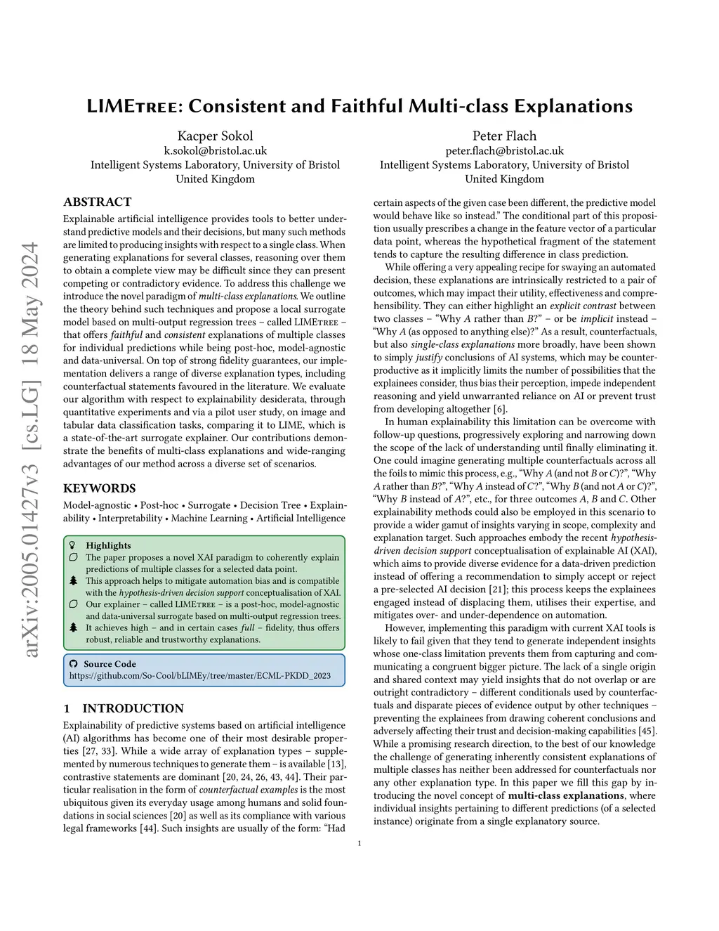 LIMEtree: Consistent and Faithful Surrogate Explanations of Multiple Classes