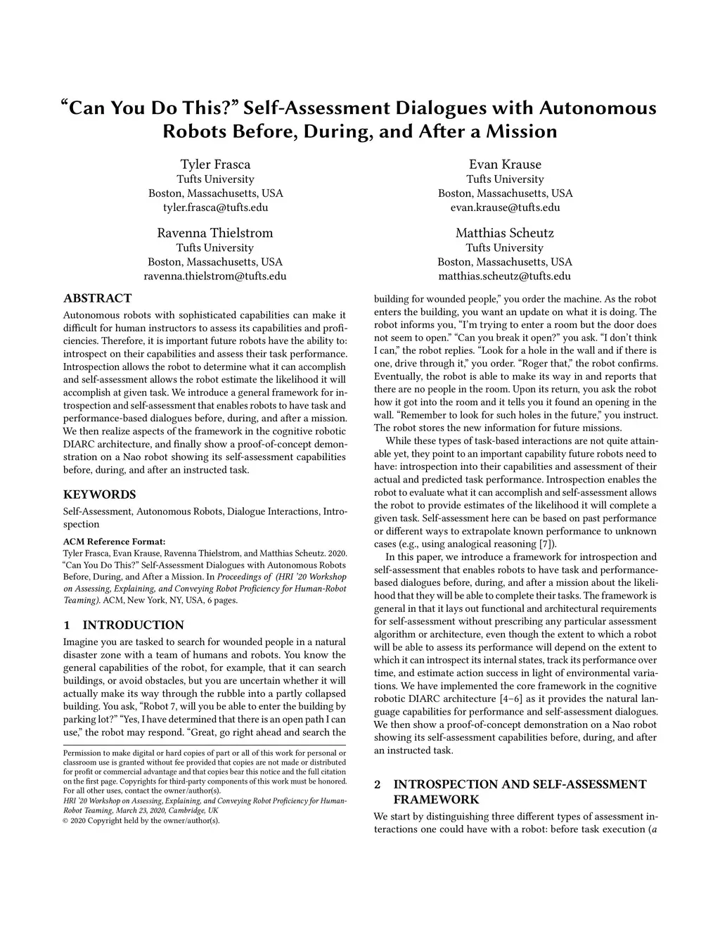"Can you do this?" Self-Assessment Dialogues with Autonomous Robots