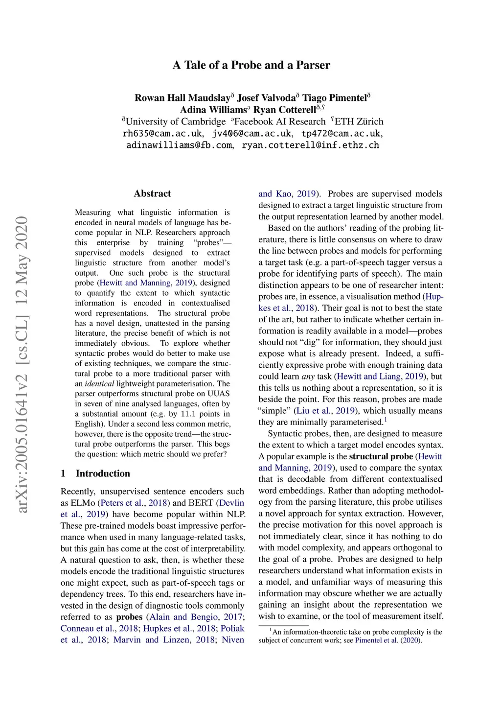 Measuring what linguistic information is encoded in neural models of language has become popular in NLP. Researchers approach this enterprise by training "probes" - supervised models designed to extract linguistic structure from another model's output. One such probe is the structural probe (Hewitt and Manning, 2019), designed to quantify the extent to which syntactic information is encoded in contextualised word representations. The structural probe has a novel design, unattested in the parsing literature, the precise benefit of which is not immediately obvious. To explore whether syntactic probes would do better to make use of existing techniques, we compare the structural probe to a more traditional parser with an identical lightweight parameterisation. The parser outperforms structural probe on UUAS in seven of nine analysed languages, often by a substantial amount (e.g. by 11.1 points in English). Under a second less common metric, however, there is the opposite trend - the structural probe outperforms the parser. This begs the question: which metric should we prefer?