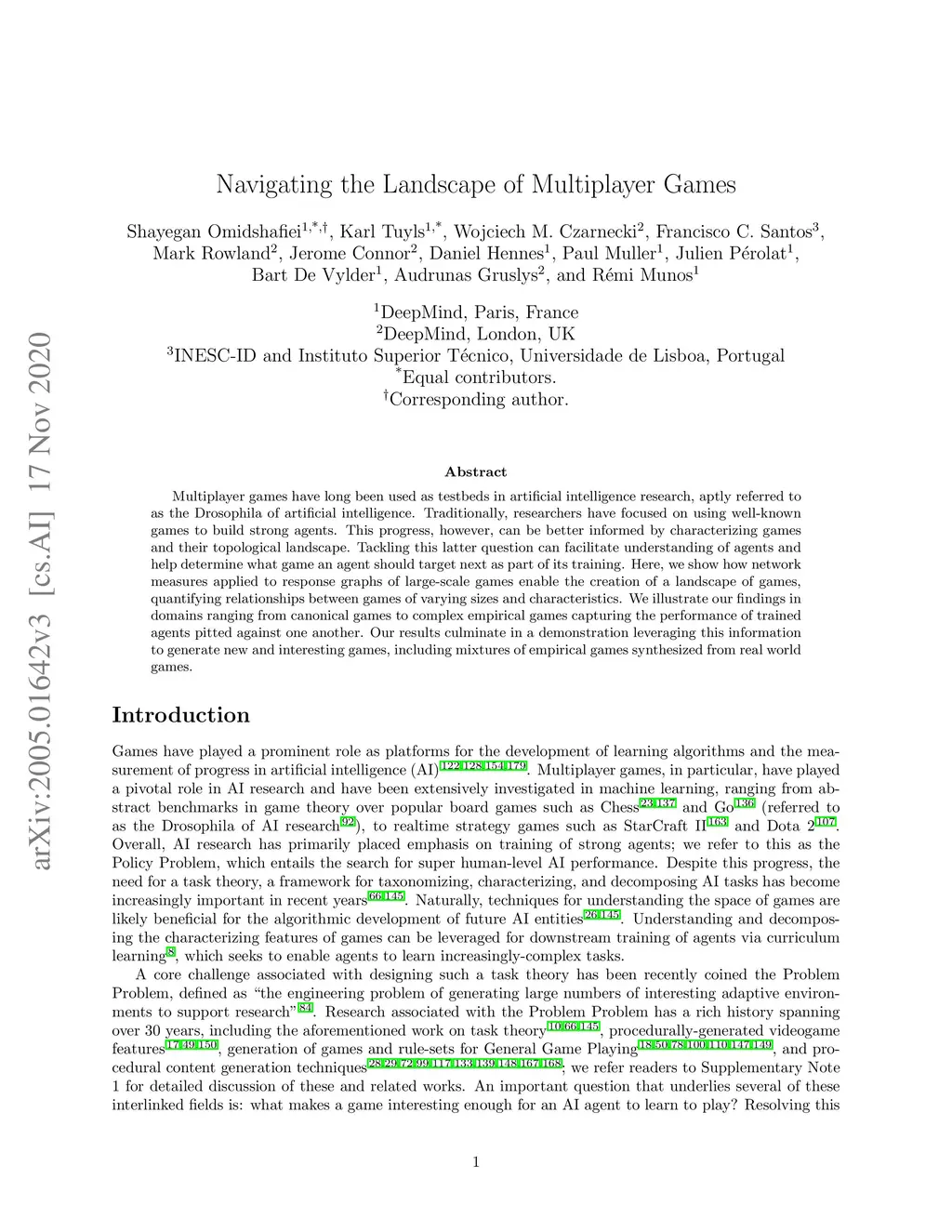 Multiplayer games have long been used as testbeds in artificial intelligence research, aptly referred to as the Drosophila of artificial intelligence. Traditionally, researchers have focused on using well-known games to build strong agents. This progress, however, can be better informed by characterizing games and their topological landscape. Tackling this latter question can facilitate understanding of agents and help determine what game an agent should target next as part of its training. Here, we show how network measures applied to response graphs of large-scale games enable the creation of a landscape of games, quantifying relationships between games of varying sizes and characteristics. We illustrate our findings in domains ranging from canonical games to complex empirical games capturing the performance of trained agents pitted against one another. Our results culminate in a demonstration leveraging this information to generate new and interesting games, including mixtures of empirical games synthesized from real world games.
