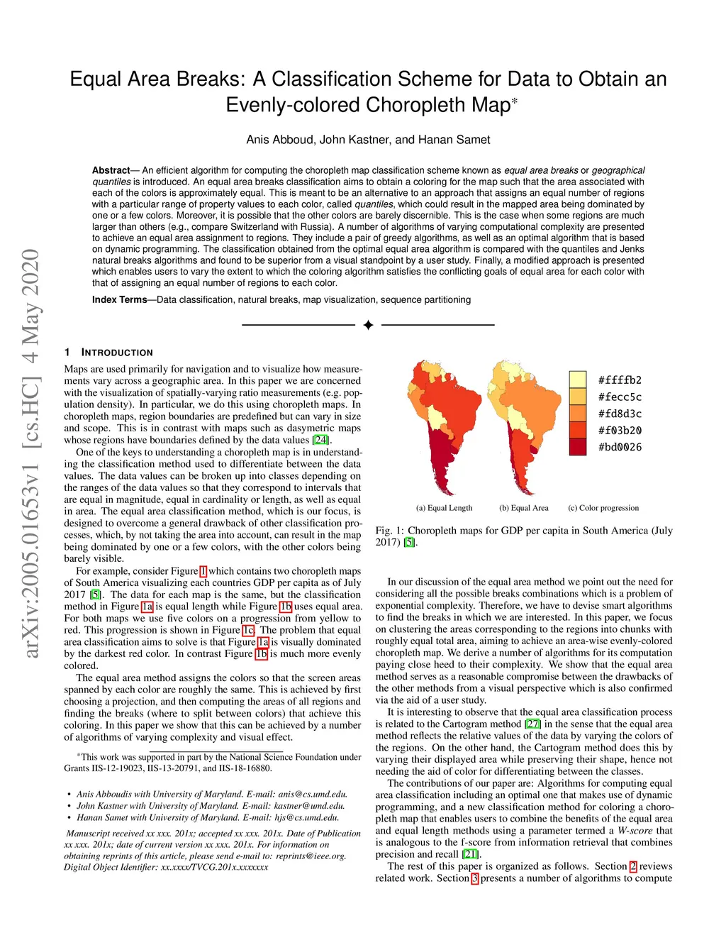 Equal Area Breaks: A Classification Scheme for Data to Obtain an