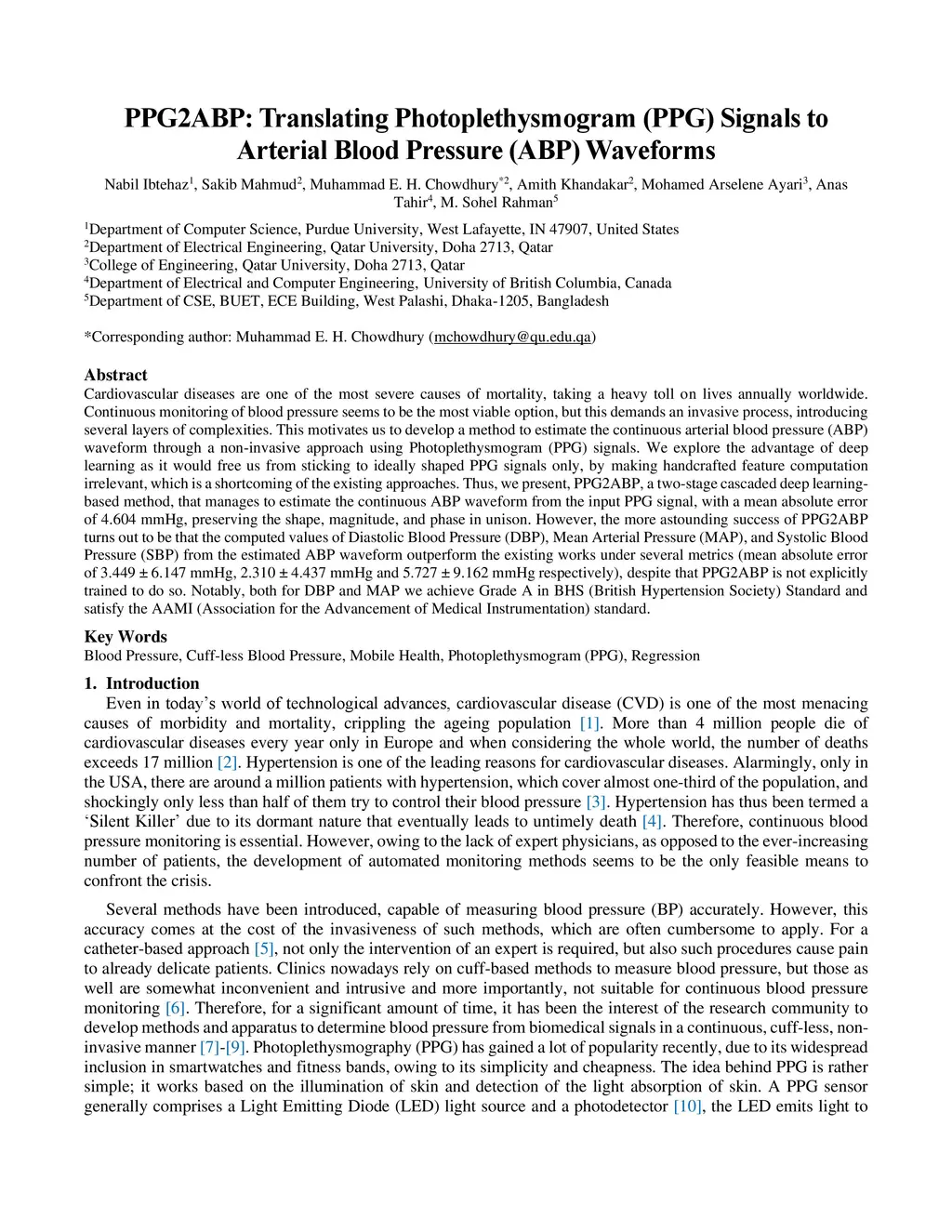 PPG2ABP: Translating Photoplethysmogram (PPG) Signals to Arterial Blood