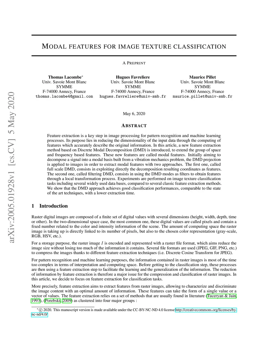 Modal features for image texture classification