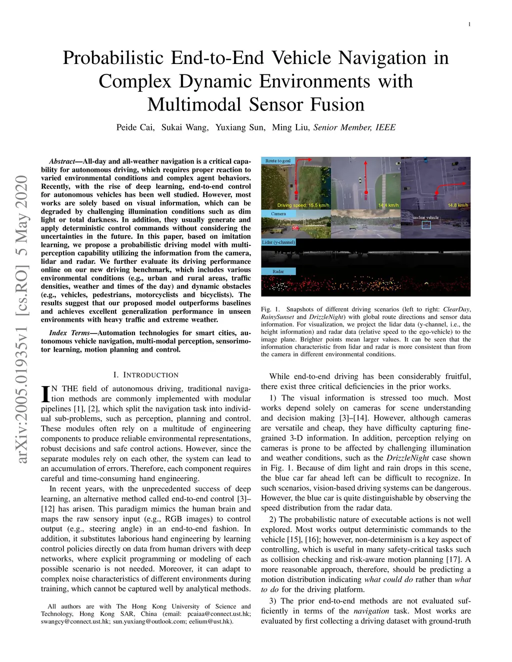 Probabilistic End-to-End Vehicle Navigation in Complex Dynamic