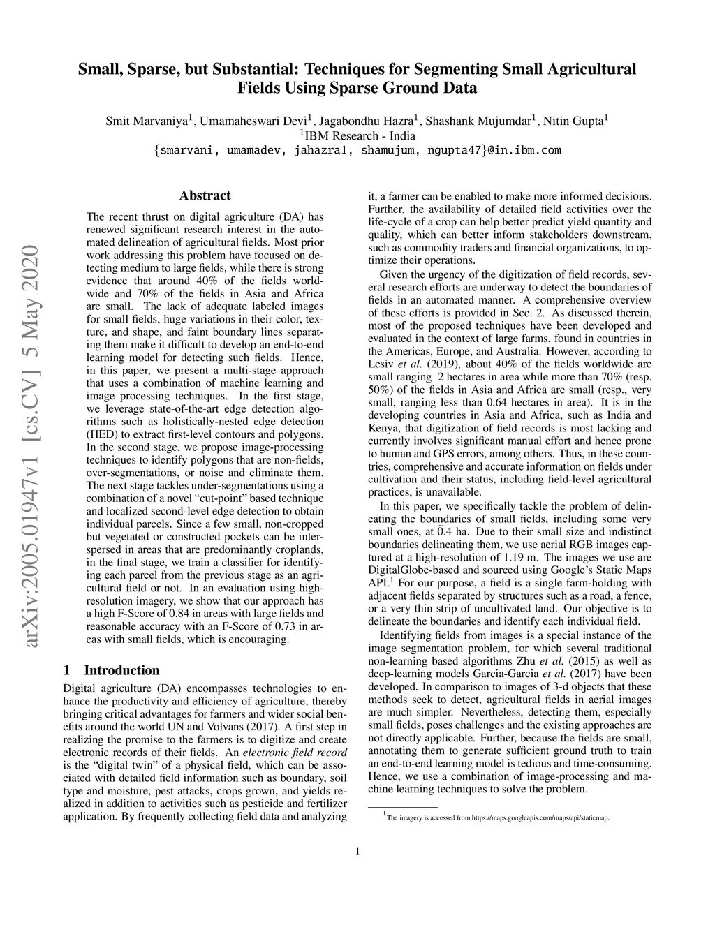 Agricultural Fields Using Sparse Ground Data