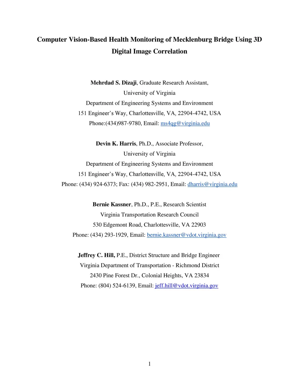 Computer Vision-Based Health Monitoring of Mecklenburg Bridge Using 3D
