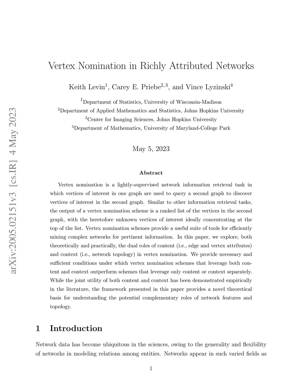 Vertex nomination is a lightly-supervised network information retrieval task in which vertices of interest in one graph are used to query a second graph to discover vertices of interest in the second graph. Similar to other information retrieval tasks, the output of a vertex nomination scheme is a ranked list of the vertices in the second graph, with the heretofore unknown vertices of interest ideally concentrating at the top of the list. Vertex nomination schemes provide a useful suite of tools for efficiently mining complex networks for pertinent information. In this paper, we explore, both theoretically and practically, the dual roles of content (i.e., edge and vertex attributes) and context (i.e., network topology) in vertex nomination. We provide necessary and sufficient conditions under which vertex nomination schemes that leverage both content and context outperform schemes that leverage only content or context separately. While the joint utility of both content and context has been demonstrated empirically in the literature, the framework presented in this paper provides a novel theoretical basis for understanding the potential complementary roles of network features and topology.